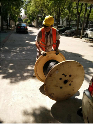 (工作人员正在烈日高温下布线)