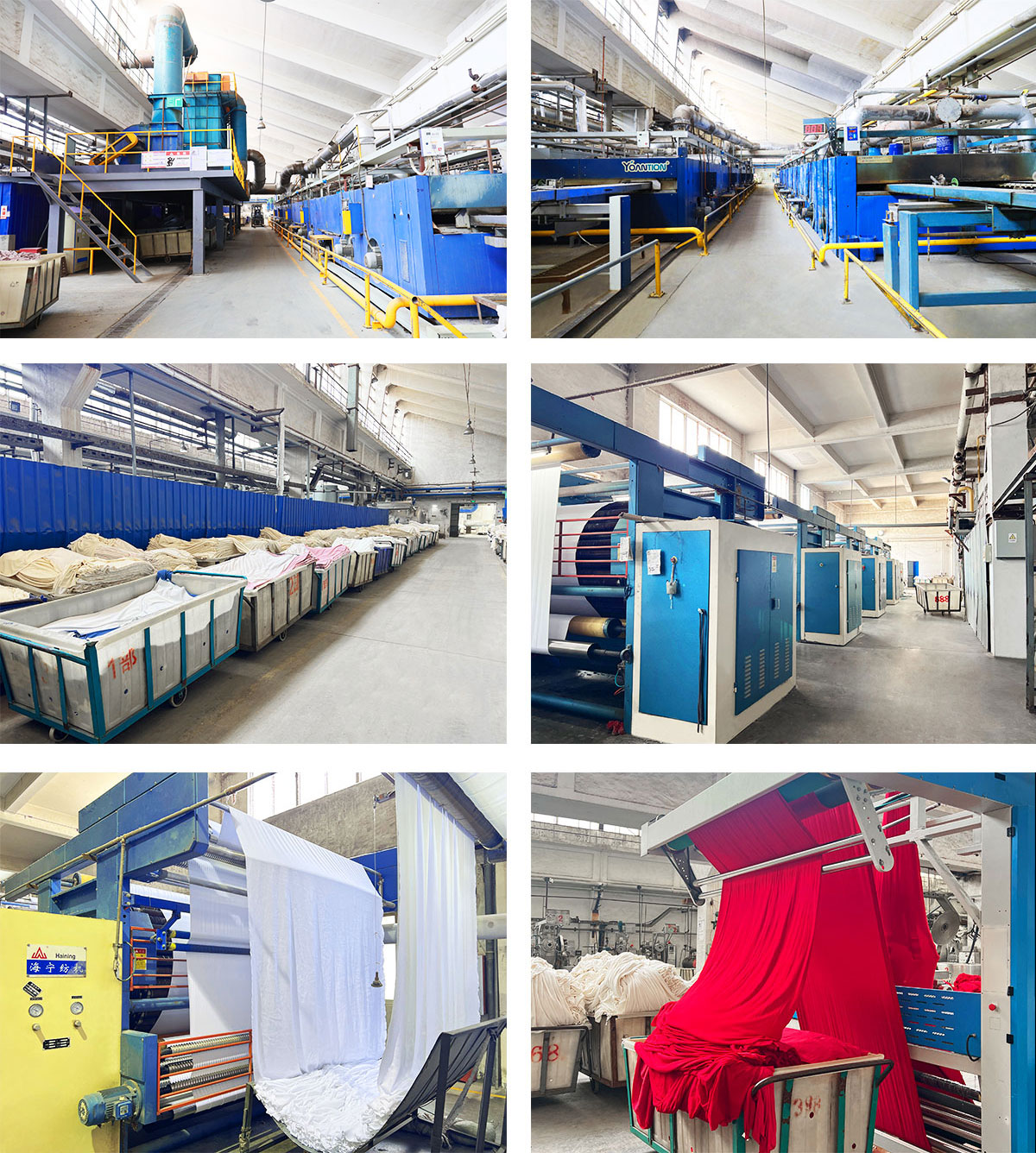 1、主要设备:拉幅定型机、空气压缩机、进口高温高压染色机、常温溢流机、脱水机、烘燥机、起毛机、烫光机、螺杆空压机等等。