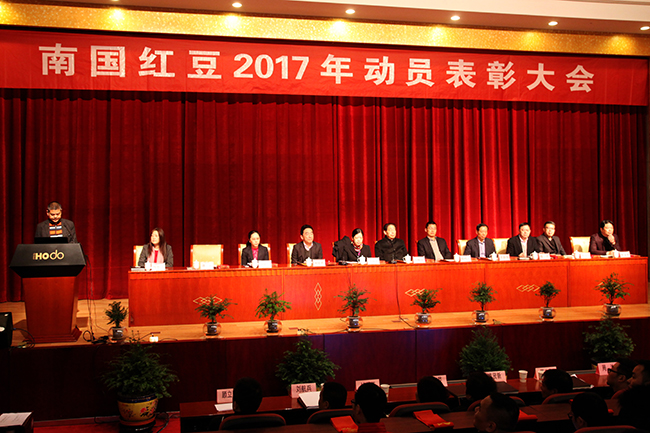 金鸡报春闻征鼓,只争朝夕启新程。2月4日,南国红豆2017年动员表彰大会在红豆集团会议中心举行。董事长周鸣江在动员大会上做出重要讲话,会议同时表彰了2016年度员工及团队,并听取下属控股子公司负责人回顾2016年工作业绩,规划2017年工作日程的发言。集团股东会会长周耀庭、集团总裁周海燕等集团领导以及南国红豆控股有限公司各职能部门及下属控股子公司全体员工参加了会议。