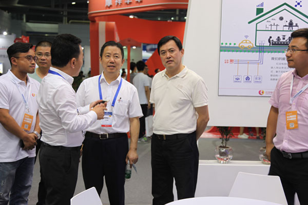 江苏省无锡市委副书记,市政府市长、党组书记汪泉;省公安厅党委委员,无锡市副市长,市公安局局长、党委书记谢晓军;红豆集团股东会会长周耀庭;全国工商联副主席、红豆集团党委书记、董事局主席兼CEO周海江;南国红豆控股有限公司董事长周鸣江等领导莅临红豆电信展台参观指导。