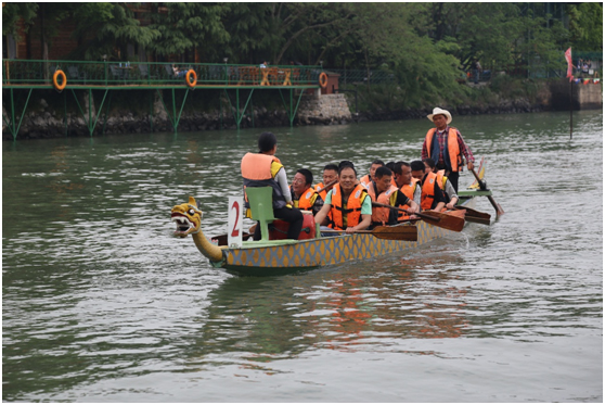 在龙舟竞技中协同配合,奋勇争先。