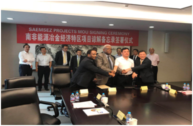 5月中下旬,南非能源冶金经济特区项目谅解备忘录签署仪式在京举行。南国红豆控股有限公司总经理蔡杰、副总经理周向东、汤红星、南非贸工部副总司长赛佛•扎寇德、南非能源冶金基地有限公司董事长宁一海、中国华电董事长、总经理等出席了此次签署仪式。