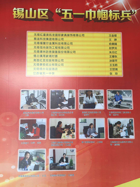 近日,为深入贯彻落实党的十九大精神以及中央和省、市群团工作会议精神,进一步激发全区广大职工为高质量发展做贡献的劳动热情,积极投身富强美丽和谐幸福新锡山建设,锡山区总工会决定表彰一批“工人先锋号”、“十佳金点子”、“职工技术操作能手”和“五一巾帼标兵”。