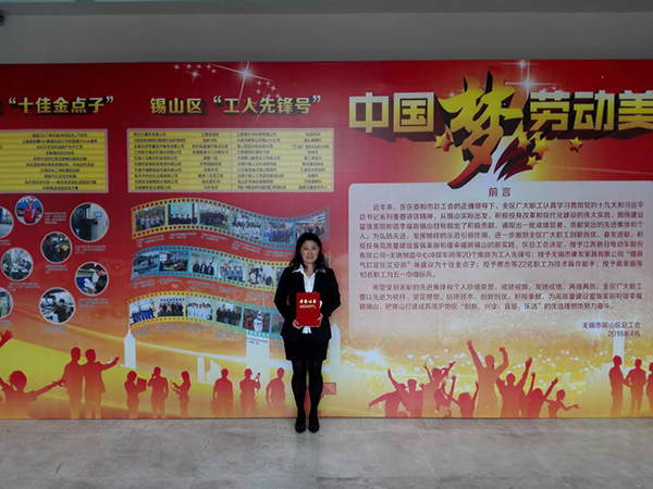 南国红豆——南国服饰外贸员工涂翠平同志被评为锡山区“五一巾帼标兵”。