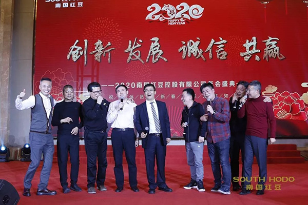 颁奖典礼后,董事长周鸣江回顾总结了南国红豆2019年的发展成果,并科学部署了2020年的整体规划。周总表示:2019年,公司坚守“创新 发展 诚信 共赢”的核心价值观,借助党的政策春风和时代机遇,不断迎接新挑战。各个业务板块协调发展,取得了良好的成绩。这一年,我们公司坚持产业“走出去”战略,发扬“工匠精神”,狠抓质量效益,突出管理提升。2020年,公司上下要积极应对各种挑战,立足新时代,实现新作为,科学规划发展蓝图与业绩指标,有效实施创新驱动发展战略,提高全员自主创新意识,以更大的智慧和勇气,继续砥砺前行,锐意改革创新,助推公司站在新的起点上向更高的行业目标迈进!向开创持续成长共享发展的百年南国迈进!