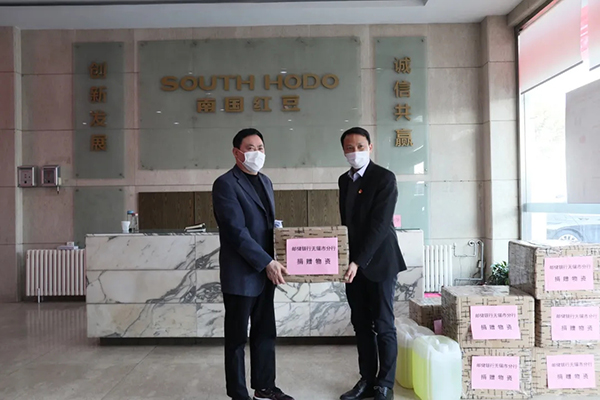 2020年3月5日下午3点,邮储银行无锡市分行刘学副行长一行莅临南国红豆,捐赠了10箱电暖袋和3桶消毒水,同时南国红豆控股有限公司赠送了口罩(2000个)。此次互赠不仅仅是延续双方战略合作伙伴关系,同时也表示了疫情严峻时刻互帮互助、共克时艰的决心。