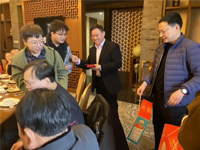 佳肴过后,总经理蔡杰和工会主席钱晓峰给留锡员工门发放了压岁红包和新年礼盒,希望疫情能早日结束,明年的现在能与家人团团圆圆过新年。