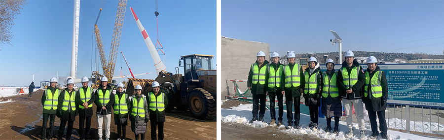 铁岭清开风电项目被列入国家“十四五”期间第一批大型风电、光伏基地项目,是辽宁省唯一的国家级“双示范”项目,也是中能建辽宁院推进绿色化、数智化、融合化“一创三转”转型发展的重点工程。在项目现场,考察团一行对升压站、定位基础、风机设备等重要设施进行了实地、实情、实景的了解和观摩,随后听取了项目技术管理人员关于风电项目技术规范与施工要求的详细介绍,并就风电项目全生命周期开发建设运营展开了深入交流与讨论。