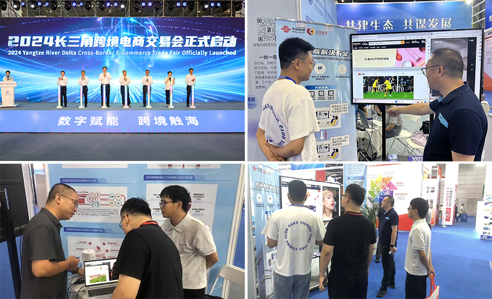 2024年6月25日,长三角跨境电商交易会在江苏无锡太湖国际博览中心隆重开幕,红豆电信联合中国联通携ST新型国际互联网解决方案参会。