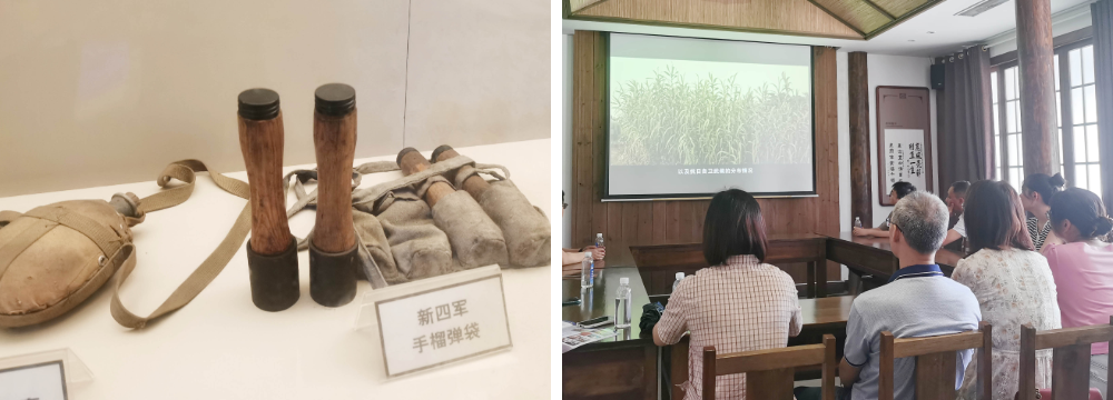 支部党员们首先参观了新四军六师部旧址纪念馆。纪念馆共分为三个展览区,通过一张张生动的老照片,一段段形象的宣传视频,我们仿佛回到了那战火纷飞的年代,看到了谭震林师长指挥当地军民进行艰苦卓绝的反“清乡”斗争,无数革命烈士前赴后继,甘洒热血……回望那风雷激荡的峥嵘岁月,捧读用热血与生命写就的红色华章,党员们更加深刻地理解了中国共产党的理想、力量与担当。